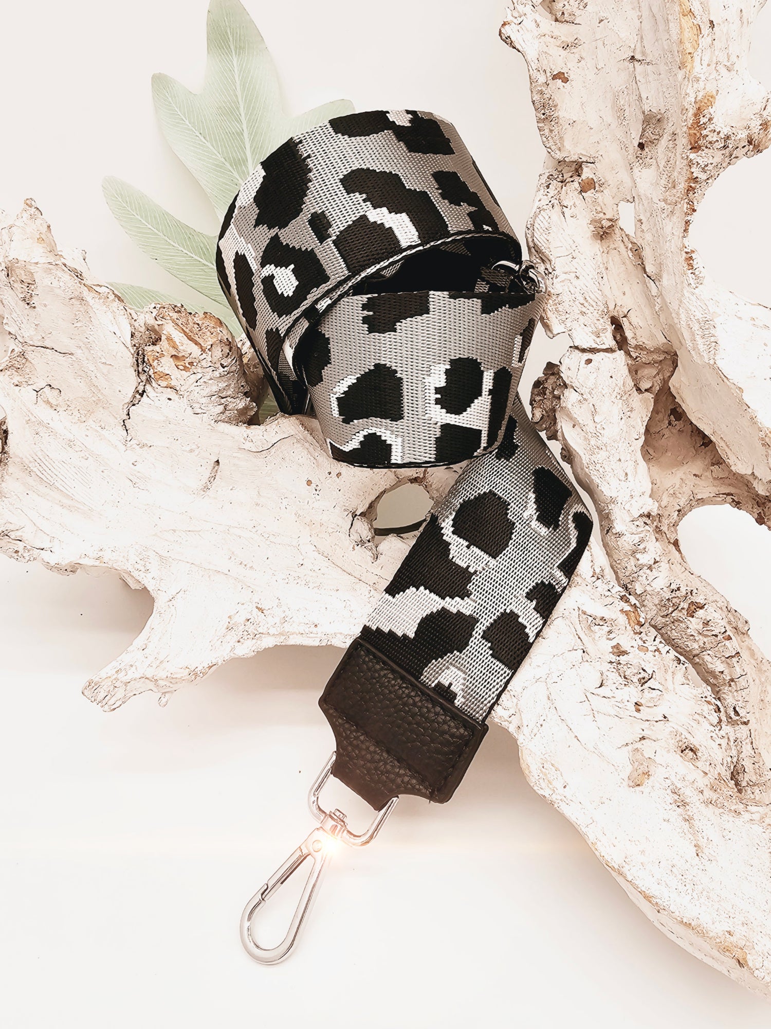 TASCHENGURT Schultergurt Taschenriemen / SCHWARZ GRAU Silber / LEO